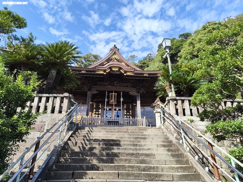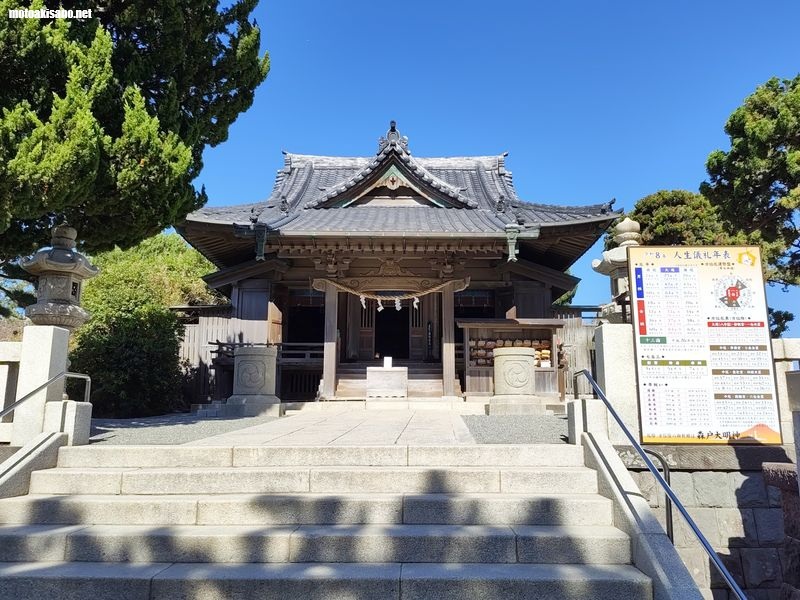 逗子駅を越えて葉山マリーナを過ぎ、森戸海水浴場隣の「森戸神社」へ。