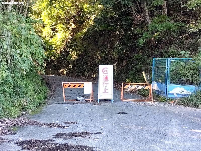 途中から未舗装路になりますが、その先で分岐する「林道坂畑線」は舗装林道なので走りやすくなる…予定でしたが、なんと「坂畑線」は通行止め!