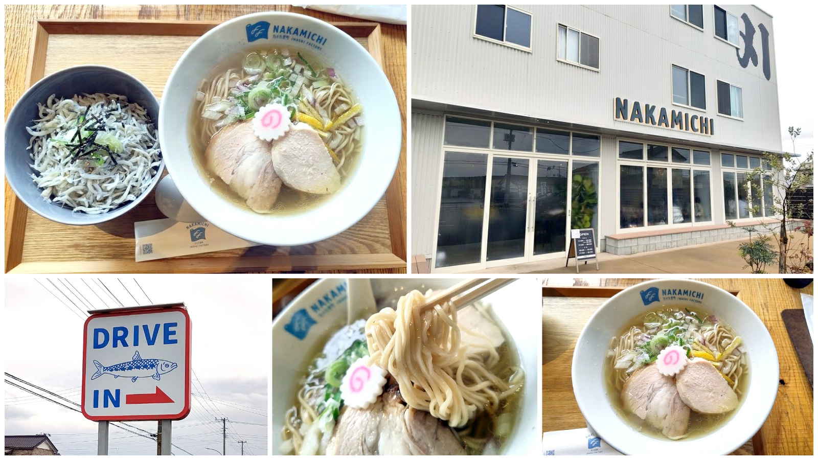 時折降る小雨の中を白里辺りから九十九里海岸沿いを北上して、片貝海岸近くにある煮干業者のやっている煮干しラーメンの店「Nakamichi」へ。