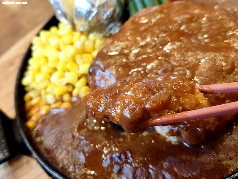 ソースは昔ながらの感じのデミグラスで、ハンバーグも含めて何とも懐かしい、古き良き洋食のハンバーグという感じで、我々世代にとっては何ともノスタルジックな味わいです。