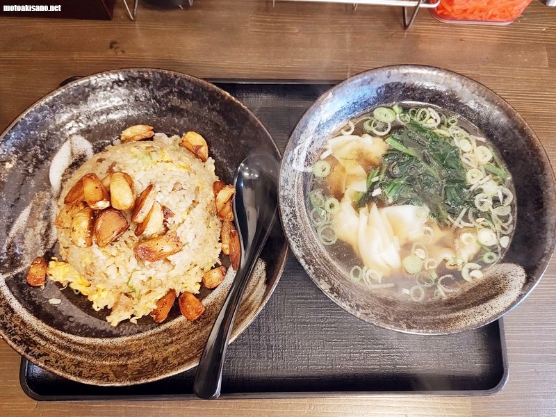 揚げにんにく追加を少し後悔しながらも、炒飯と揚げにんにく、そしてワンタンスープと揚げにんにく、美味い事は美味い。