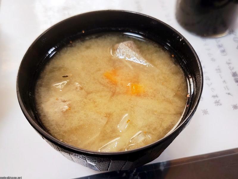 さて、こちらの名物は何と言っても「味噌汁各種」飲み放題。嬉しい事に、すぐに味噌汁用のお椀が出されます。