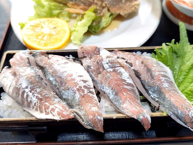 中型アジ2尾分が、酢飯の上に乗ってきました。