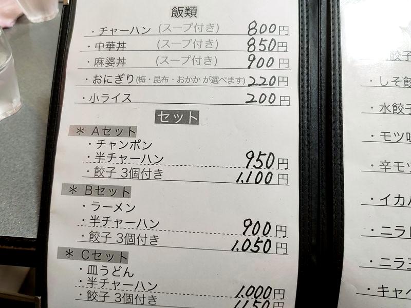 800円のちゃんぽんに、+300円で半チャーハンと半餃子(3個)がセットになるというビックリ価格。
